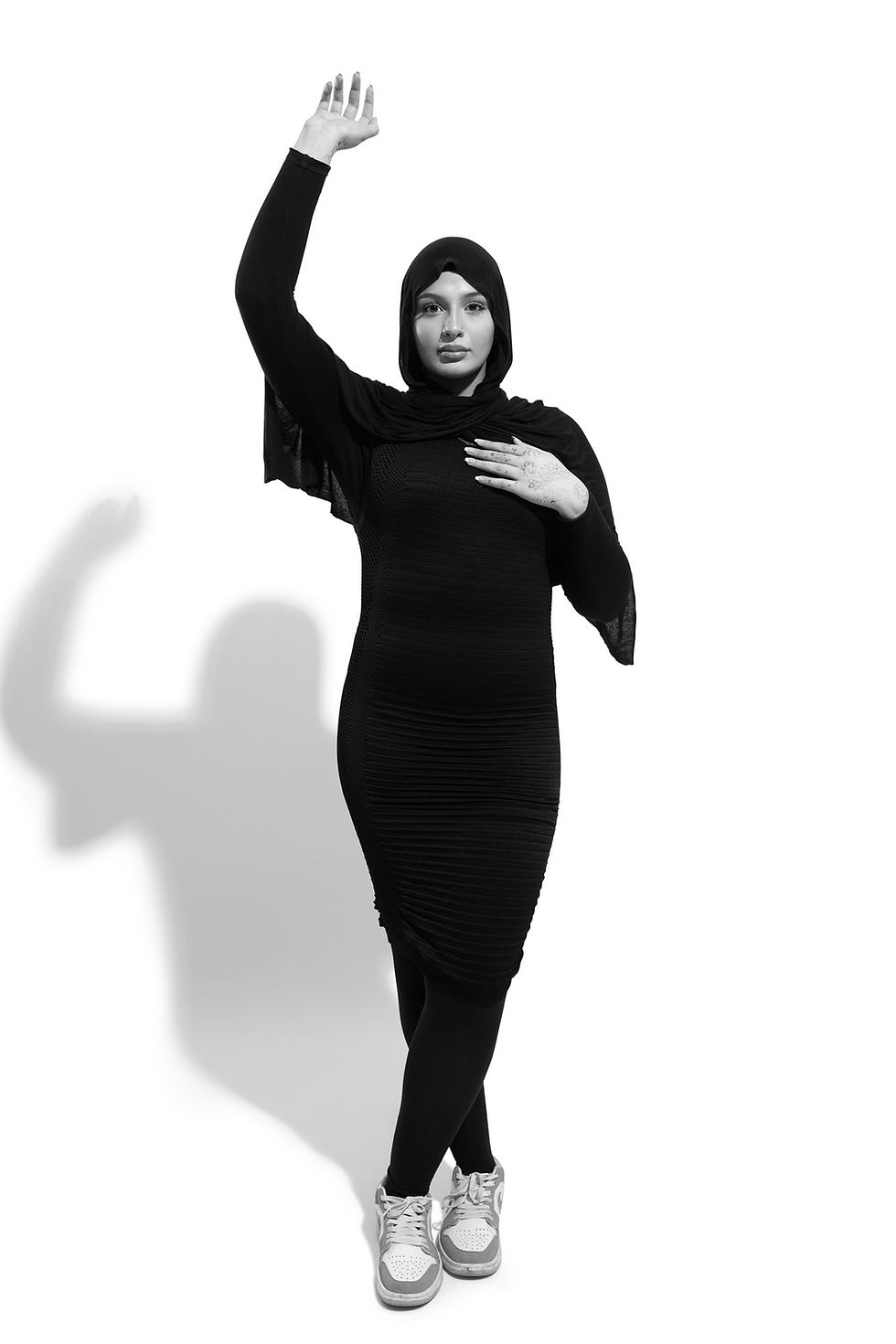 Das "Black Dress" ist ein Hightech-Kleid, das universell einsetzbar ist. Das Kleid nimmt mit der Trägerin Gestalt an. Es passt sich nahtlos an jeden Körper an und in jeden Kontext ein. Damit wird es zu einem unverzichtbaren Teil der Garderobe.